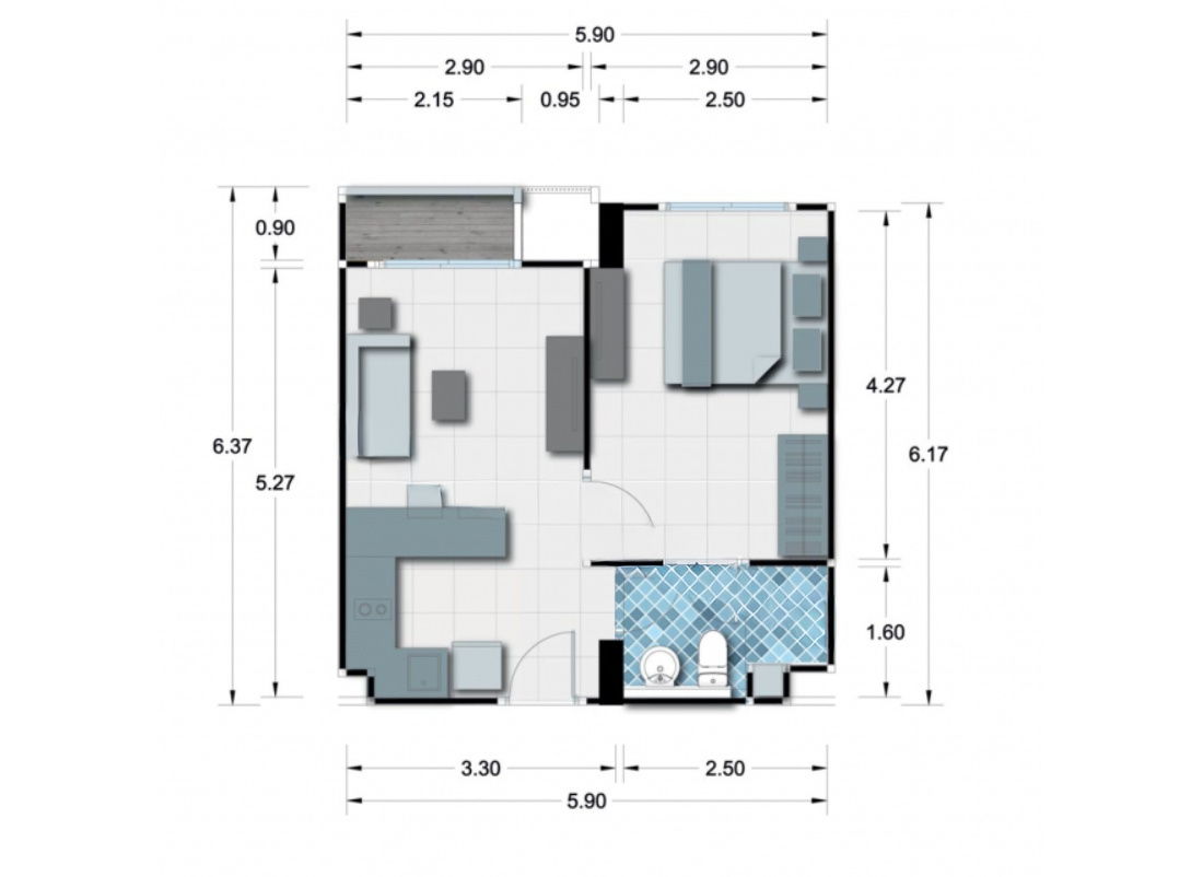 The apartment comes fully furnished and move-in ready. Positioned on the 6th floor, residents enjoy pleasant views while maintaining easy access to the building's amenities and the vibrant city below.