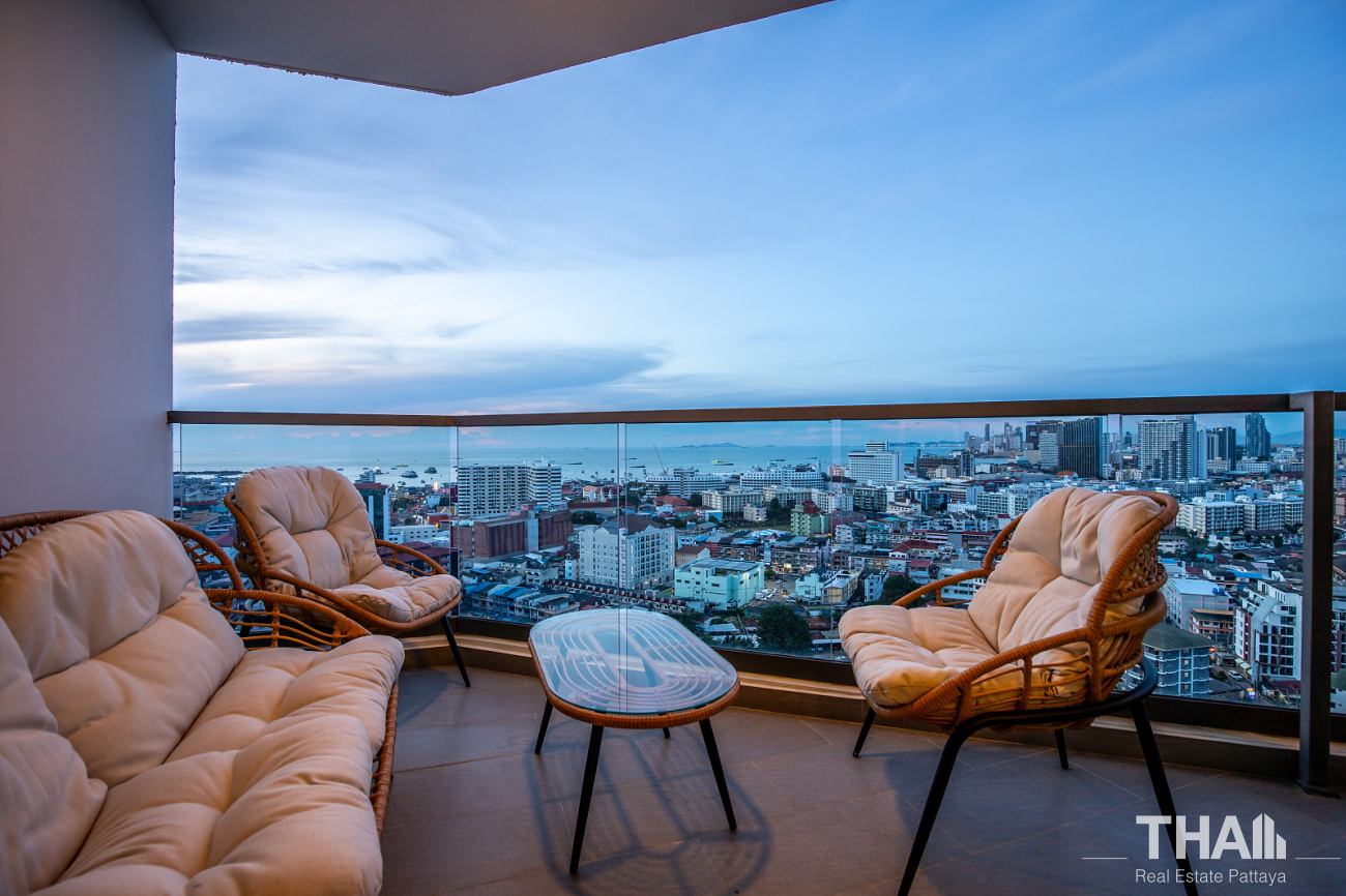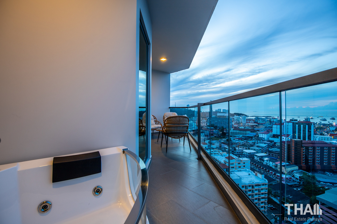 Panoramic Views: Enjoy stunning vistas of both Pattaya City and sea from the comfort of your living space. These views can be savored not only from the large windows but also from your spacious private balcony, providing the perfect backdrop for relaxation and entertaining. Unwind in the private jacuzzi on your balcony while taking in the vibrant city and sea views.