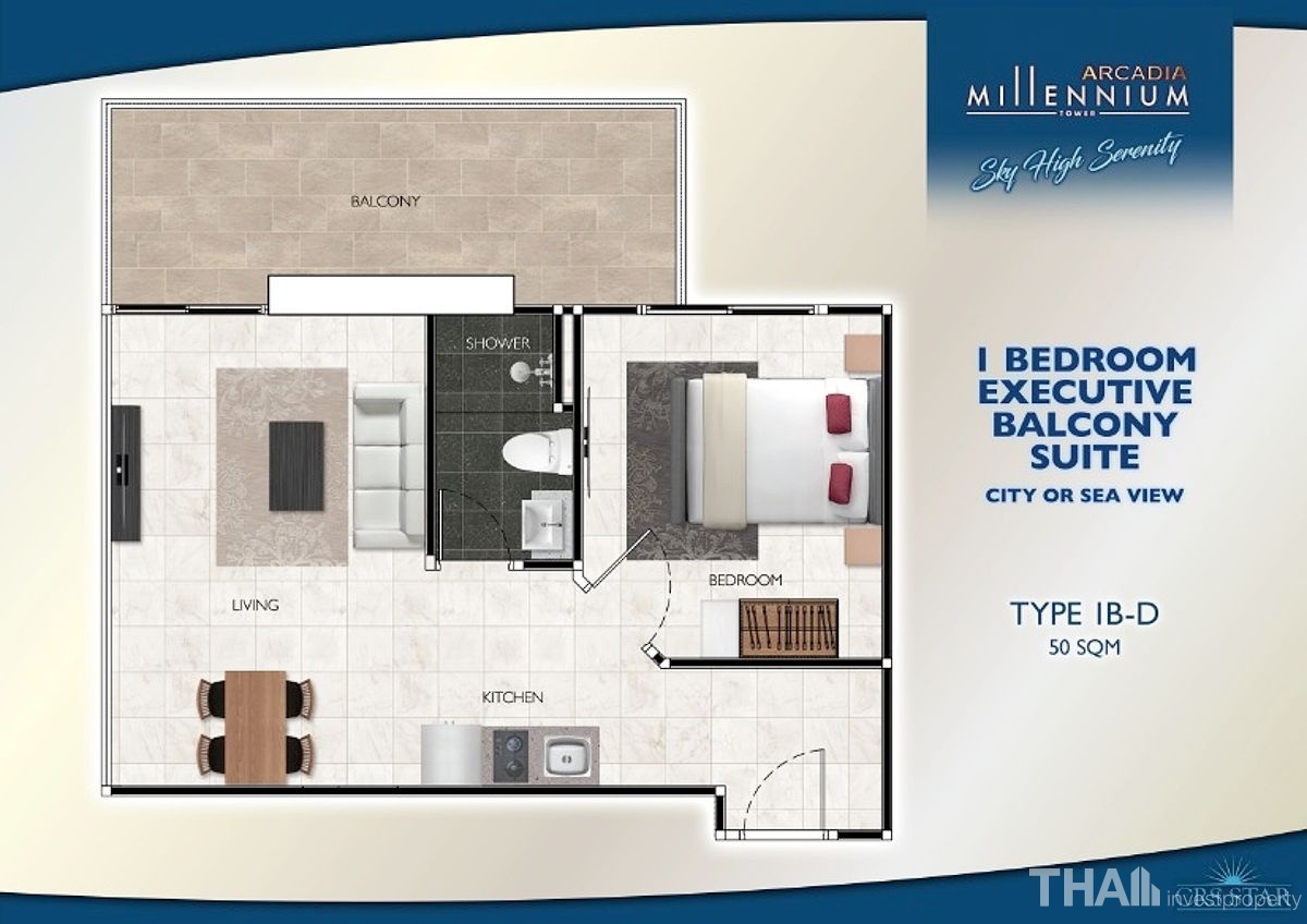 These unparalleled views can be appreciated fully from the enormous 31st floor infinity pool, as well as from the rooftop infinity pool with daunting, state-of-the-art overhanging pool sections pulling you out into the abyss. Additional, first-class development amenities include a spectacular hotel-style lobby ascending 12 meters high, sky-high fitness club & Zen Yoga relaxation zones, lush botanical gardens with open-air barbeque areas, an array of sports & leisure amenities, health spa & sauna, and commercial area with gourmet restaurant and much more. At the Pinnacle of LuxuryArcadia Millennium Tower features a diverse range of luxurious residential suites with something to cater for every prospective buyer.